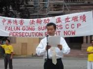 M. Zhang Zhaojin, représentant de l’Association de Falun Dafa à Toronto s’adresse au rassemblement