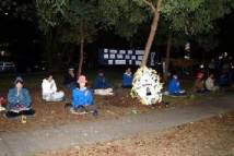 Ce jour-là, ce fut la journée la plus froide de la saison d'hiver, en Australie. La pluie venait de cesser et le vent était froid. La nuit s’est installée bientôt. Les pratiquants ont allumé des bougies, ils ont présenté les exercices, distribué du matériel et ont fait jouer des films de clarification de la vérité sous le vent froid.