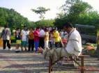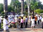La chaleur est devenue plus intense le matin mais elle n'a pas empêché les gens de vouloir apprendre les faits et de signer les pétitions soutenant le Falun Gong Les méthodes perverses de torture du PCC ont été exposées au soleil. De plus en plus de gens dans le monde viennent pour connaître les faits.