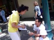 Au cours des soirées du samedi et du dimanche, les pratiquants ont promu le Falun Dafa sur la plage de Waikiki. Waikiki est un site touristique célèbre avec de nombreux vendeurs le long des rues. C'est un bon endroit pour promouvoir Dafa. Les exercices paisibles du Falun Gong ont attiré de nombreux passants. Un bon nombre d'entre eux voyait le Falun Gong pour la première fois. Quelques touristes ont commencé à apprendre les exercices dans la rue. Plusieurs personnes ont accepté d’emblée les dépliants.