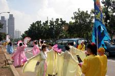 37 organismes des droits de l'homme en Indonésie ont tenu une série d'événements pour marquer le jour international des Nations Unies pour soutenir les victimes de tortures (26 juin). Le défilé du 26 juin a amené les événements à leur apogée. Les Amis du Falun Gong en Indonésie ont invité des douzaines de pratiquants de Falun Gong à participer au défilé. Le groupe de pratiquants était unique, très paisible et a reçu les éloges des organismes des droits de l'homme participant.