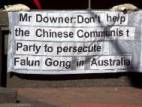 - La bannière dit: M. Downer n’aidez pas le Parti Communiste Chinois à persécuter le Falun Gong en Australie