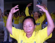 Démonstration des exercices pour montrer la beauté du Falun Dafa