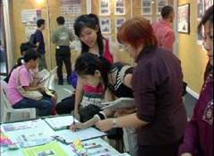 Le premier jour, l'exposition d'art s’est bien passée. Après avoir appris la vérité au sujet du Falun Gong, beaucoup de gens signaient la pétition pour soutenir les pratiquants dans leur opposition à la persécution. En voyant la beauté de la cultivation de Falun Dafa, certains ont immédiatement demandé où sont les sites de pratique et où ils pourraient apprendre les exercices.