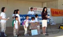 Ils ont voyagé avec leurs parents au cours de ces deux jours dans l’espoir que par leurs efforts, des enfants d’âge semblable en Chine continentale puissent avoir une enfance heureuse comme eux. À la conférence de presse, deux jeunes pratiquants ont dit lors de leur discours : « SVP soutenez-le « Portez secours à des orphelins de Falun Gong en Chine. »