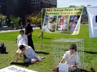 Les pratiquants tiennent une exposition anti torture à l’extérieur du Parlement