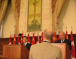 "Comme je l’ai mentionné dans mes commentaires…. j'ai soulevé la question du Falun Gong." Le premier ministre canadien Paul Martin a répondu à la question de Roger Smith, "Nous croyons que le développement économique et un meilleur gouvernement exigent non seulement la franchise et l’honnêteté, mais une compréhension sur l'importance des droits de l'homme."