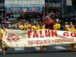 applaudissaient alors que la procession des pratiquants de Falun Gong passait devant