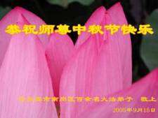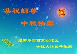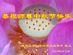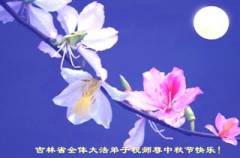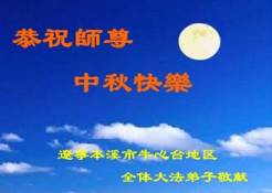Tous les pratiquants de la région de Niuxintai de la ville de Benxi, province de Liaoning respectueusement souhaitent à notre bien-aimé Maître un Joyeux Festival de la mi-automne.