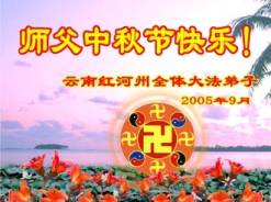 ous les pratiquants de Falun Dafa de Honghezhou, province de Yunnan respectueusement souhaitent à notre grand et bienveillant Maître un Joyeux Festival de la mi-automne!