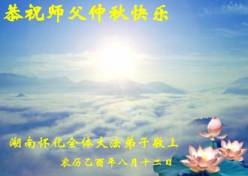 Tous les pratiquants de Falun Dafa de Huaihua, province de Hunan Province respectueusement souhaitent à notre bien-aimé Maître un Joyeux Festival de la mi-automne.