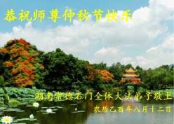 Tous les pratiquants de la ville de Shiqiao, province de Liaoning respectueusement souhaitent à notre bien-aimé Maître un Joyeux Festival de la mi-automne.