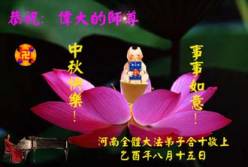 Nous vous souhaitons respectueusement un Joyeux Festival de la mi-automne! Vos disciples accompliront vos enseignements par tous les moyens, feront de notre mieux pour bien faire les trois choses (étudier la Loi, clarifier la vérité et émettre la pensée droite) pour remplir notre mission et nos vœux sacrés. Nous sommes très déterminés à ne pas laisser tomber votre salut bienveillant!