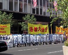 Hu Jintao à New York: les pratiquants livrent leur message à Hu à proximité, à quelques occasions