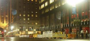 Le soir, les pratiquants ont par hasard croisé le cortège de Hu qui revenait à l'hôtel lorsqu'ils marchaient sur l'avenue du parc en revenant de la grande parade de la Place des Nations Unies sur la troisième avenue, à la fin du grand défilé. Les pratiquants se sont écriés très fort vers le cortège : « Falun Dafa est grand! » « Hu Jintao, le temps que le ciel et le peuple vous accorde est limité » et « Arrêtez la persécution du Falun Gong »