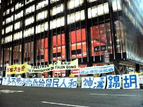 Lors de la tenue du sommet mondial des Nations Unies à New York, les pratiquants de Falun Gong ont organisé une série d’activités à grande échelle pour faire appel à des gens de tous les horizons pour qu’ils aident à arrêter la persécution du Falun Gong qui sévit en Chine. Une des activités importantes a été une veille qui a duré 24 heures d’affilée à l’extérieur de l’hôtel Waldorf-Astoria où logeait Hu Jintao.
