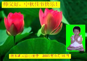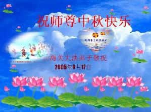 Tous les disciples de Dafa dans la province Hunan, ville de Shenzhen, ville de Baoji et Shaoguan souhaitent respectueusement un joyeux festival de la lune de la Mi-automne au grand Maître!