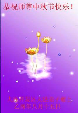 Les pratiquants de Dafa de la zone de développement de Dalian souhaitent respectueusement un joyeux festival de la lune de la Mi-automne au Maître!