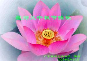 Tous les pratiquants de Falun Dafa dans la ville de Guangzhou, province de Guangdong, souhaitent respectueusement un joyeux festival de la lune de la Mi-automne au Maître!