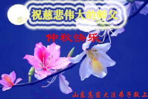 Les pratiquants de Dafa dans la ville de Qingdao, province de Shandong, souhaitent respectueusement un joyeux festival de la lune de la Mi-automne au Maître!