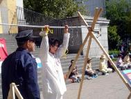 L’exposition contre la torture touche la bonne nature des gensLe 27-28 août 2005, les pratiquants de Falun Gong à Vancouver ont tenu à nouveau une exposition contre la torture devant la Galerie d'art au centre-ville. En reconstituant les méthodes de torture employées contre les pratiquants de Falun Gong en Chine, les pratiquants ont montré au public la torture et les abus brutaux infligés aux pratiquants de Falun Gong durant les six dernières années sous le règne autocratique du PCC.