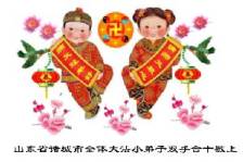 Tous les pratiquants (incluant les jeunes pratiquants) de la région Hutian, province Shandong souhaitent une bonne année au bienveillant grand Maître !