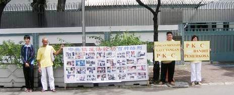 Le matin du 29 décembre, quelques pratiquants indonésiens de Jakarta se sont rendus devant l’ambassade de la Thaïlande pour y tenir une manifestation pacifique. Ils ont déployé des affiches et des banderoles, dont une sur laquelle on pouvait lire : « Ne soyez pas des complices du PCC (Parti Communiste Chinois). Ils ont aussi remis à l’ambassade une lettre ouverte, dans laquelle ils condamnent les mauvais traitements, les arrestations ainsi que la détention de pratiquants en Thaïlande, ces actes ont eu lieu du 10 au 15 décembre.