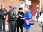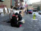 Un homme plus âgé, dans les 70 ans, avec une canne, a regardé pendant longtemps l’exposition photo. Il était très étonné de lire la vérité au sujet de l'incident d'auto immolation à la Place Tian An Men. Un pratiquant lui a fait l’analyse des détails et les points suspects qui démontraient que l'incident était totalement monté par le Parti communiste chinois. L'homme hochait de la tête en signe d’acquiescement. Plus de personnes ont été attirées pour venir entendre la vérité.