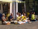 Une fois le stand installé et décoré, quelques pratiquants ont commencé la démonstration des exercices du Falun Gong. Plusieurs visiteurs se sont arrêtés curieux de voir des pratiquants assis en double lotus entrain de méditer malgré le bruit et une musique trop forte. Beaucoup sont venus à notre stand où nous avions mis en place une exposition de photos intitulée « Le parcours de Falun Dafa ». Ils ont admiré la beauté du Falun Dafa et ont eu du mal à croire en voyant les photos de persécution comment une si belle pratique pouvait être persécutée. Ils n’arrivaient pas à comprendre comment le Parti communiste chinois (PCC) pouvait agir de façon aussi brutale avec ses propres compatriotes.