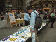 Comme les activités des pratiquants du Falun Gong ont attiré beaucoup l’attention, le stand a été visité par un grand nombre de personnes. La démonstration des cinq séries des exercices du Falun Gong a beaucoup impressionné les visiteurs. En distribuant les dépliants les pratiquants ont pu entamer plusieurs discussions profondes avec les passants.