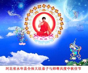 Tous les pratiquants de Falun Dafa du comté de Yongnian, de la province du Hebei célèbrent ensemble avec le vénéré Maître le Festival de la Lune de la Mi-Automne!