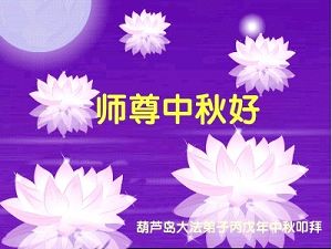 Tous les pratiquants de Huludao souhaitent respectueusement au vénéré Maître un joyeux Festival de la Lune de la Mi-Automne!