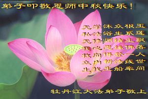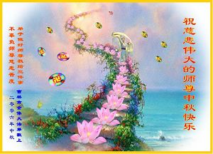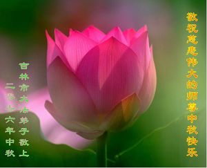 Toute la famille d’un pratiquant de Falun Dafa du district de Jinzhou , ville de Dalian souhaite respectueusement au vénérable Maître une joyeuse Fête de la Lune de la mi-automne!