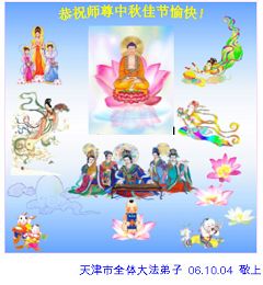 Tous les pratiquants de Falun Dafa de Tianjin souhaitent respectueusement au grand et vénérable Maître une joyeuse Fête de la Lune de la mi-automne!