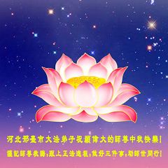 Tous les pratiquants de Falun Dafa du comté de Lingshou, province de Hebei souhaitent respectueusement au vénérable Maître une joyeuse Fête de la Lune de la mi-automne!