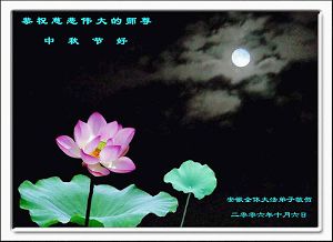 Les pratiquants de Falun Dafa des champs pétroliers de Liaohe souhaitent au Maître compatissant un joyeux Festival de la Lune de la Mi-automne!