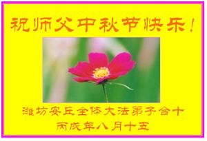 Les pratiquants de Falun Dafa de Weifang, de la province du Shandong et qui sont sans domicile, souhaitent au Maître compatissant un joyeux Festival de la Lune de la Mi-automne!