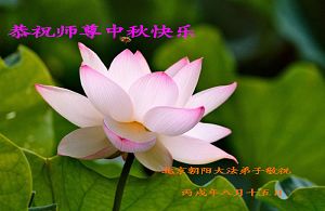 Les pratiquants de Falun Dafa de la province du Shamen souhaitent au Maître compatissant un joyeux Festival de la Lune de la Mi-automne!