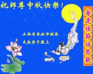 Les pratiquants de Falun Dafa de la ville de Jincheng, de la province du Shanxi souhaitent au Maître compatissant un joyeux Festival de la Lune de la Mi-automne!