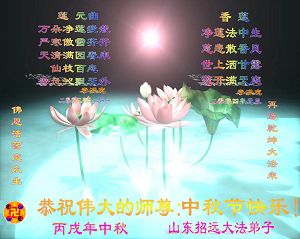 Les pratiquants de Falun Dafa des champs pétroliers de Shengli et de la ville de Dongying souhaitent au Maître compatissant un joyeux Festival de la Lune de la Mi-automne!
