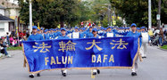 Le journaliste a vu une mère et ses deux garçons qui marchaient au côté de la Fanfare de la Terre Divine tout en distribuant du matériel de clarification des faits. La mère a dit : « Nous sommes Coréen et nous ne sommes pas des pratiquants du Falun Gong. Cependant, Ben, un camarade de classe de mon fils est un pratiquant du Falun Gong. C’est un très bon garçon et toute ma famille est venue de Toronto pour le soutenir lui et la Fanfare. »