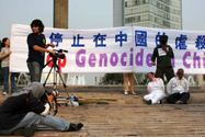 Les pratiquants du Falun Gong font une exposition anti-torture en face d’un hôtel pour exposer la persécution du Falun Gong par le Parti communiste chinois.