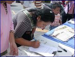 Signer pour soutenir le Falun Gong.