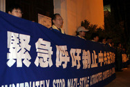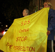 | Les pratiquants de Falun Gong protestent contre la persécution. |