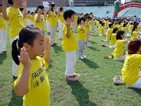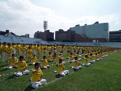 La démonstration des exercices de Falun Gong par plus de 1,400 pratiquants a été l’une des dernières activités de cette rencontre sportive. C’était le groupe le plus nombreux à ces jeux.
