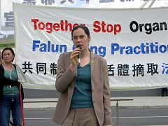 Dans son discours lors du rassemblement, Dr Carmen Lawrence (MP) a invité les gens à prêter attention à la persécution du Falun Gong en Chine. Elle a rappelé à chacun de lire les détails et d’analyser le rapport d’enquête canadien des prélèvements d’organes sur des personnes vivantes par le PCC. Elle a suggéré que les observateurs des droits de l'homme et tous les autres exposent le triste record des droits de l'homme en Chine avant les Jeux Olympiques. Tous les crimes du PCC qui prélève des organes sur des pratiquants de Falun Gong vivants et les vendent pour le profit doivent cesser et être condamnés.