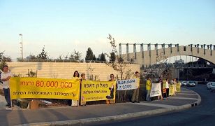Après, des pratiquants se sont divisés en deux groupes. Un groupe est allé à l'ambassade chinoise. Sur la place en dehors de l'ambassade chinoise les pratiquants ont disposé plusieurs affiches et photos pour exposer la persécution brutale du Falun Gong en Chine. Ils ont fait une démonstration des exercices du Falun Gong et ont distribué des dépliants de clarification de la vérité. Un autre groupe est allé à un grand centre commercial, a fait les exercices et a clarifié la vérité aux Israéliens présents.