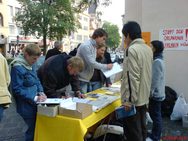 Le 14 octobre 2006 par une belle journée d'automne ensoleillée les pratiquants de Falun Gong ont tenu une autre activité de clarification des faits à Nuremberg, une ville importante pour les droits de l'homme située dans le sud de l'Allemagne. Les pratiquants vivant dans la région de Nuremberg se sont retrouvés là avec tout un tas de documents d'information à distribuer aux gens.