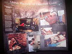 Le CCHR a choisi deux photos montrant des pratiquants de Falun Gong qui avaient été torturés au point d’être d’une faiblesse et d’une maigreur extrêmes avec des drogues psychiatriques. La légende de la photo déclarait que l'ancienne URSS n'était pas le seul pays à utiliser des goulags pour emprisonner les prisonniers politiques et qu'ils existent en Chine aussi. Les psychiatres chinois persécutent des centaines de milliers de pratiquants de Falun Gong avec des décharges électriques, l'emprisonnement et des drogues. Les langues gonflent et sortent de la bouche suite à des injections intra vasculaires de drogues. Ils emploient des aiguilles électriques à forte intensité sur les points d'acupuncture pour électrocuter les pratiquants sous les pieds, créant une douleur extrême. Ils appliquent même de grandes doses de drogues psychiatriques pour forcer les pratiquants à abandonner leur croyance.