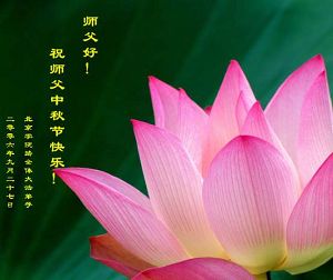 Tous les pratiquants de Falun Dafa de la route de Xueyuan à Pékin souhaitent à notre grand Maître un Joyeux Festival de la lune de la mi-automne !